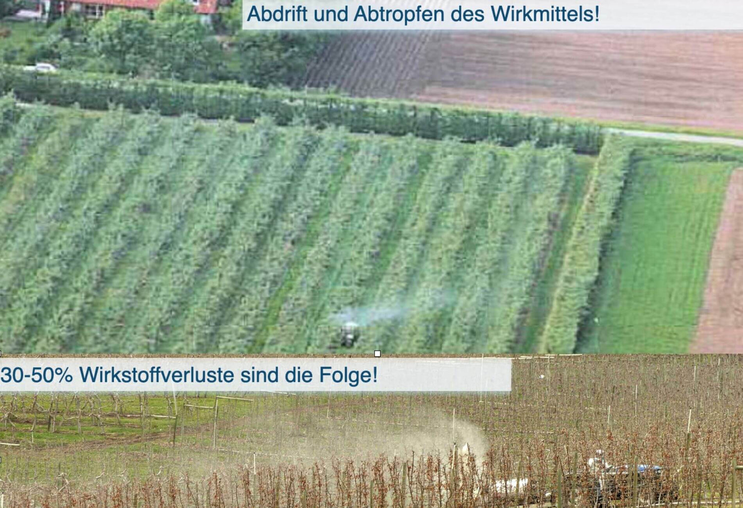 Der Einsatz von Haftmitteln wird leider immer wieder unter dem Aspekt der Wirkstoffvermittelung als unnötig von PSM-Anbietern abgetan. Aus Sicht dieser Industrie kann man das nachvollziehen. Die Untersuchungen mit Squall® belegen, dass deutlich mehr Wirkmittel verloren gehen, wenn man auf diesen Zusatz verzichtet. Wie im Bild dargestellt entstehen die Verluste des Wirkmittels durch Abdrift und noch wesentlicher durch das Abperlen der Spritzbrühe auf der Wachsschicht der Blattoberfläche. Die Wirkmittel tropfen einfach von der Blattoberfläche auf den Boden. Genau diese Verluste schaden dem Boden und stellen ein erhebliches Einsparpotential dar. Unsere Versuchsergebnisse zeigen, dass man mit Squall® diese Verluste deutlich begrenzt. Es kommt zu deutlich mehr Wirkstoff auf der Zielfläche. Somit profitieren sowohl der konventionelle als auch der biologische Pflanzenschutz. In Geld ausgedrückt bezahlt sich ein gutes Haftmittel selbst.
